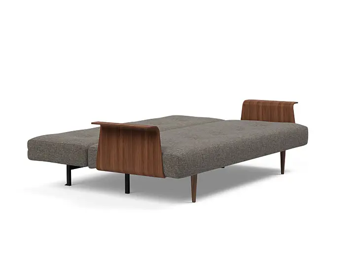 The Recast design is inspired by the international Mid-century modern movement, evident through its clean simplicity and use of wood materials exemplified in the dark stained legs and arms in walnut veneer.. sofabed